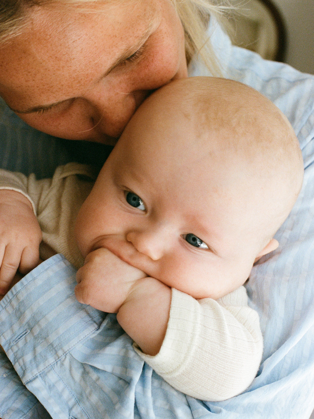 Hirsch - Fintstrikkede uldsokker - Himmelblå & Rosa