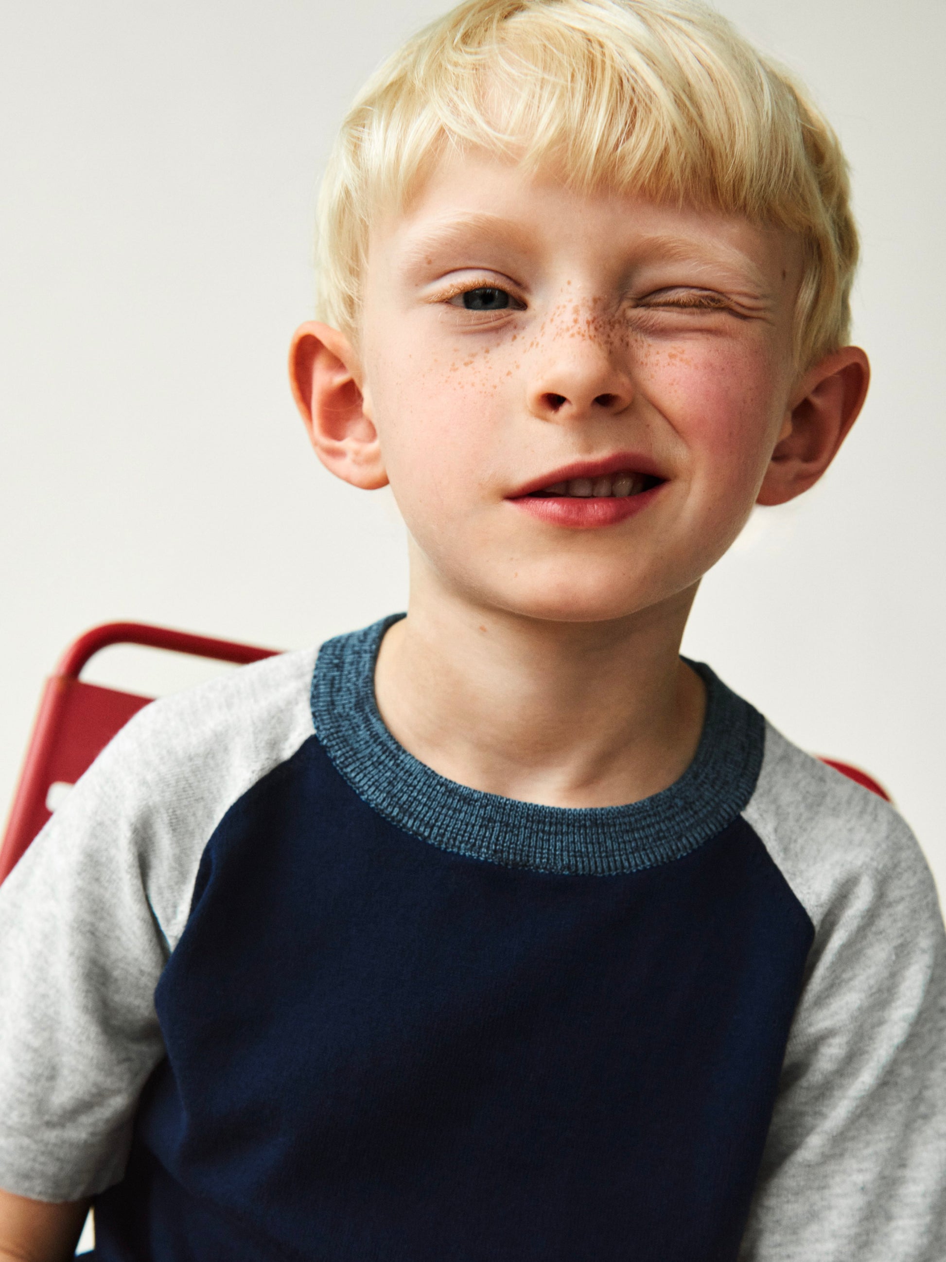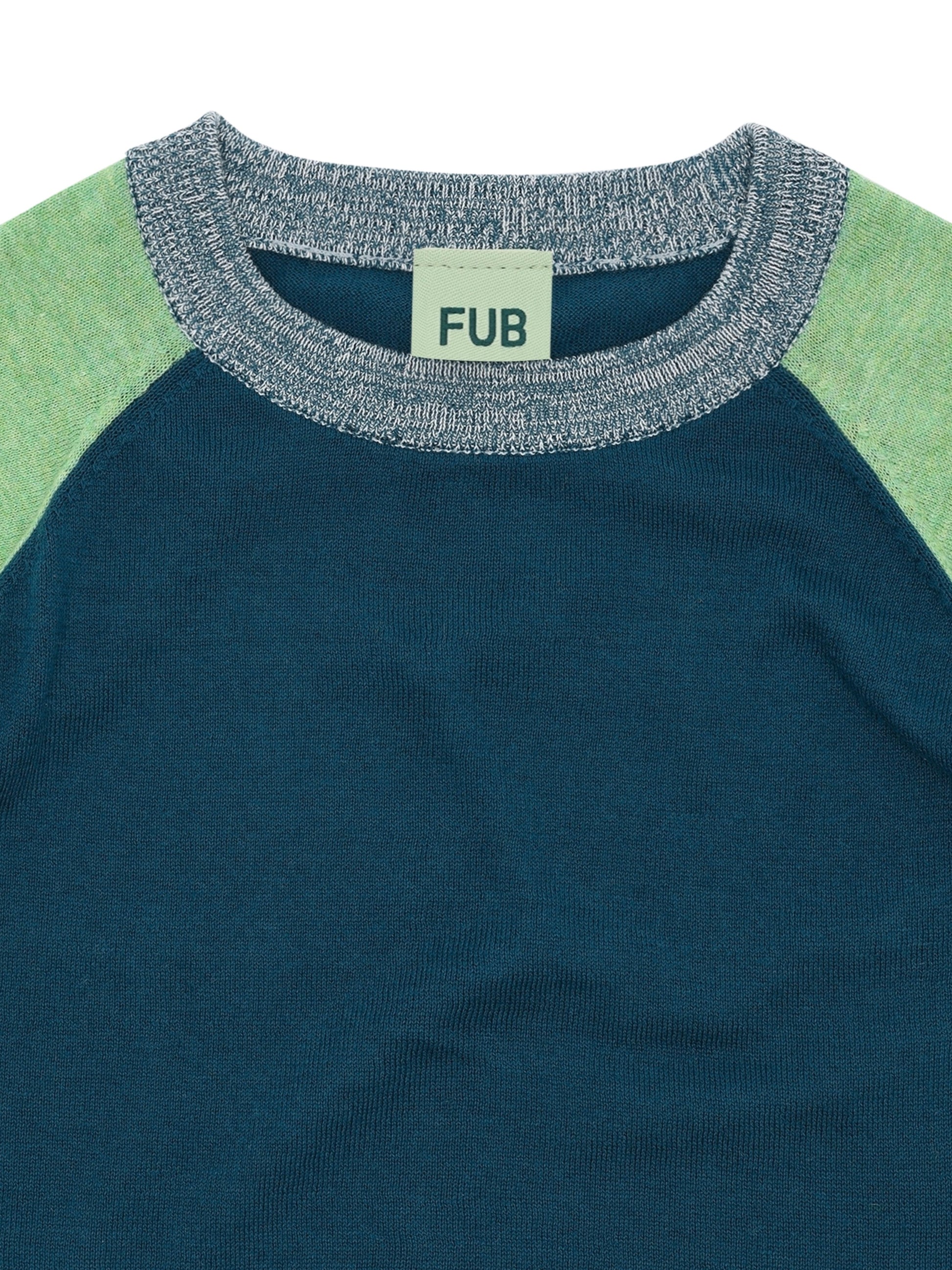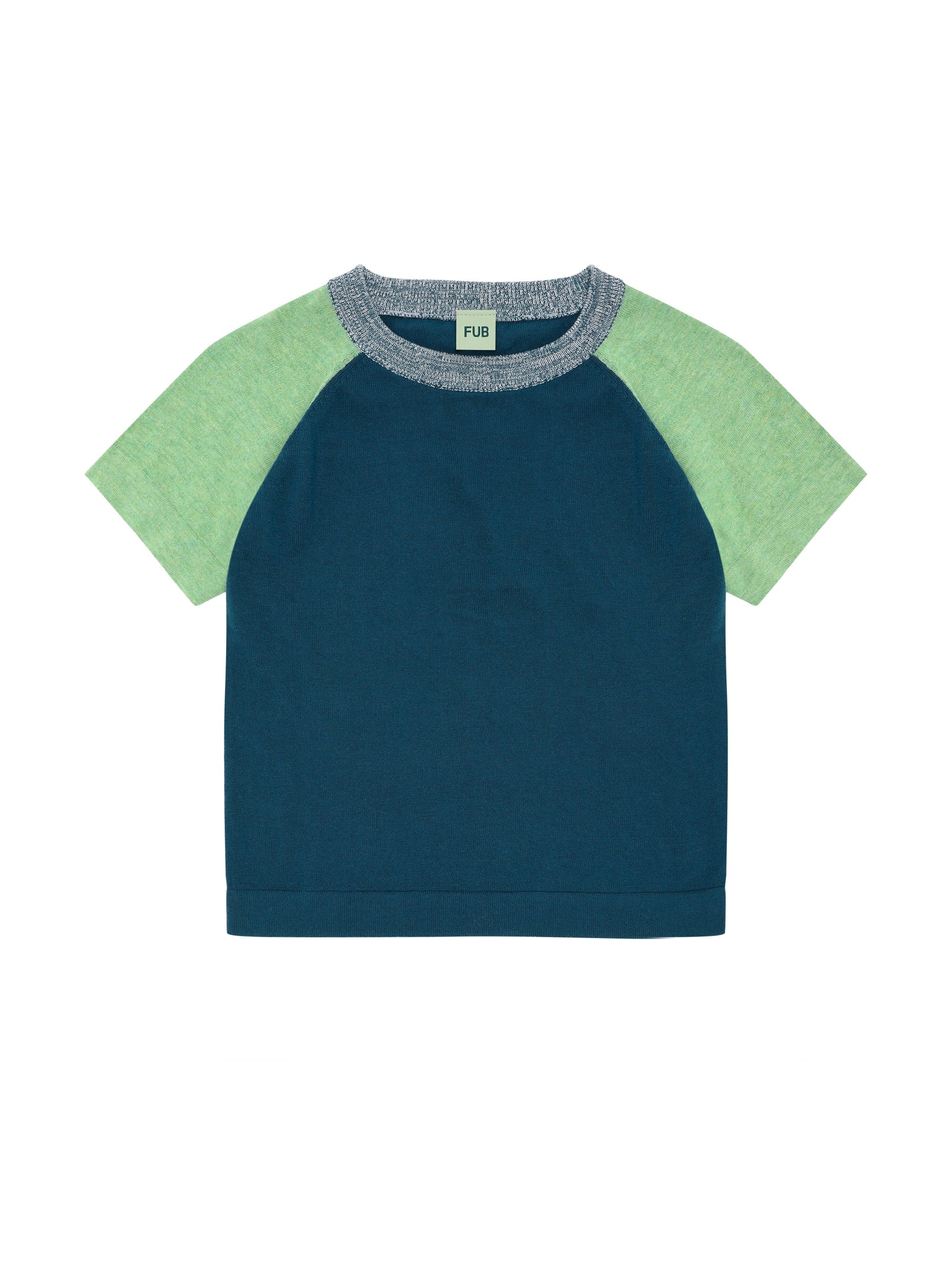 Knitted in a light-weight single jersey, this tee has a slightly loose fit, a round neckline with a mélange contrast rib edge, folded hems and raglan sleeves in contrast colors.