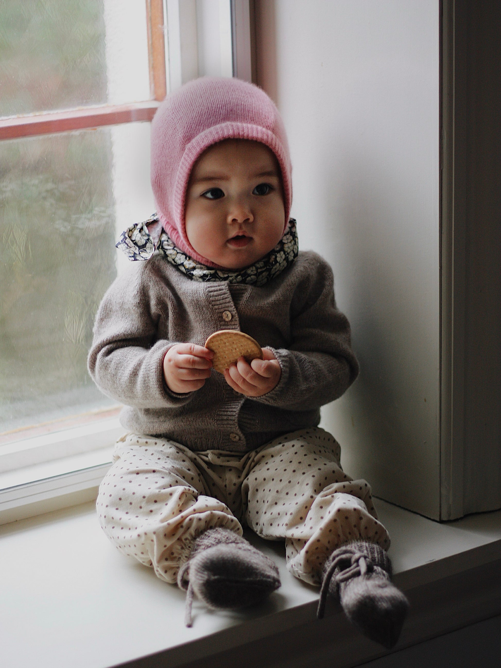 Denne fine elefanthue er håndstrikket i Nepal af 100% cashmere. En perfekt og uundværlig hue til det lille barn, der kan holde både hoved, ører og hals dejlig varmt.