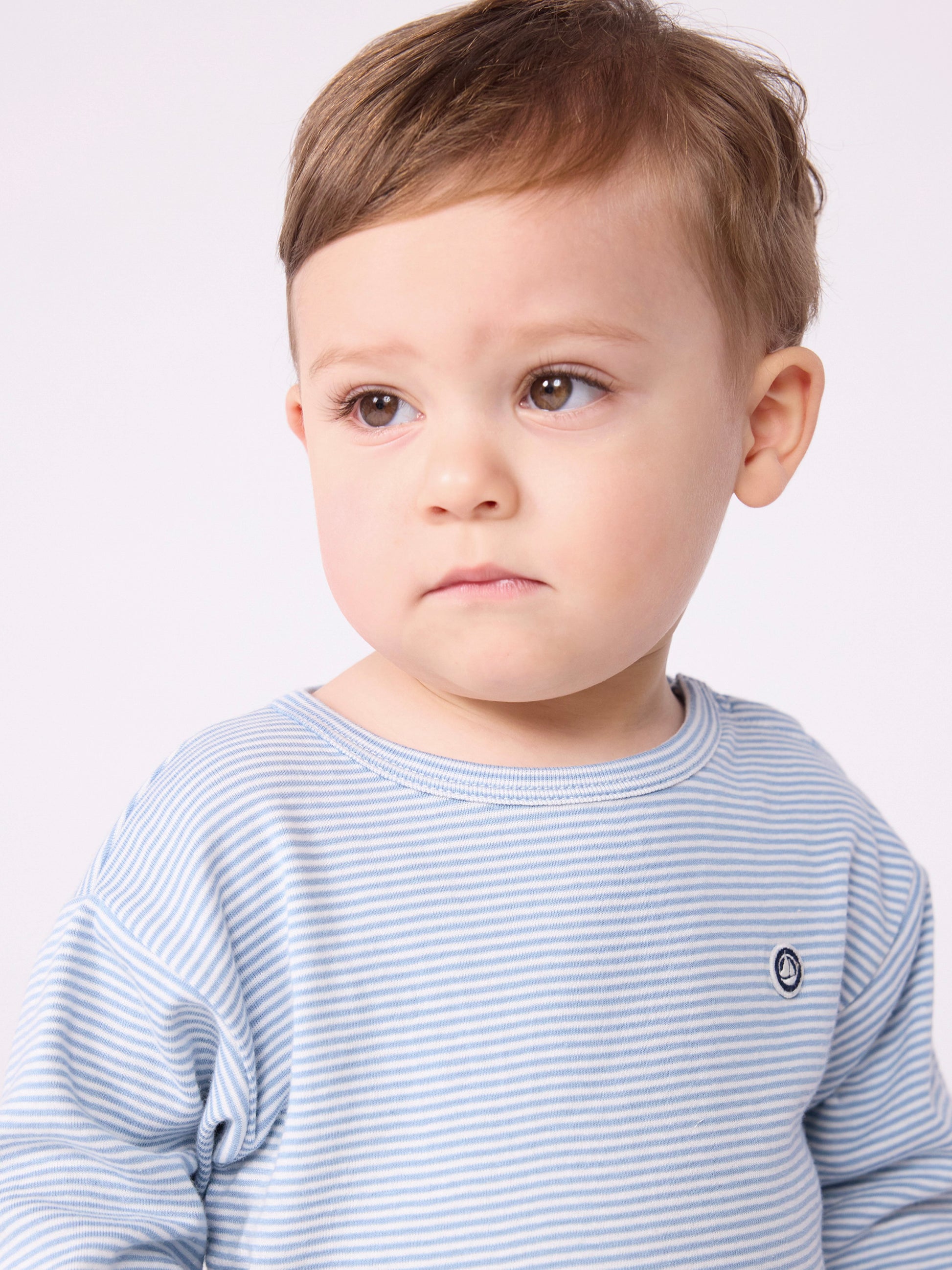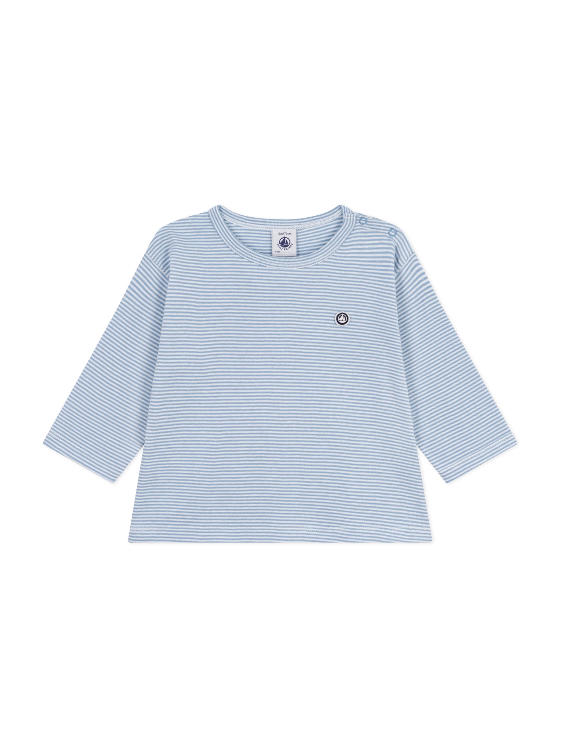 Klassisk og tidløs bluse i blød bomuld - Petit Bateaus ikoniske materiale, der holder vask efter vask. Blusen har en lille knap ved skulderen, hvilket gør den nem at få over hovedet.