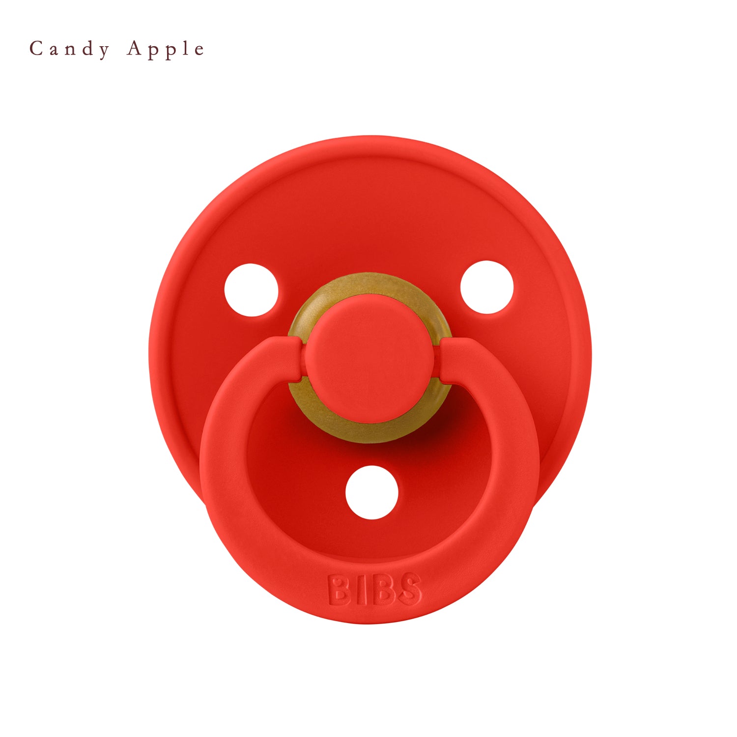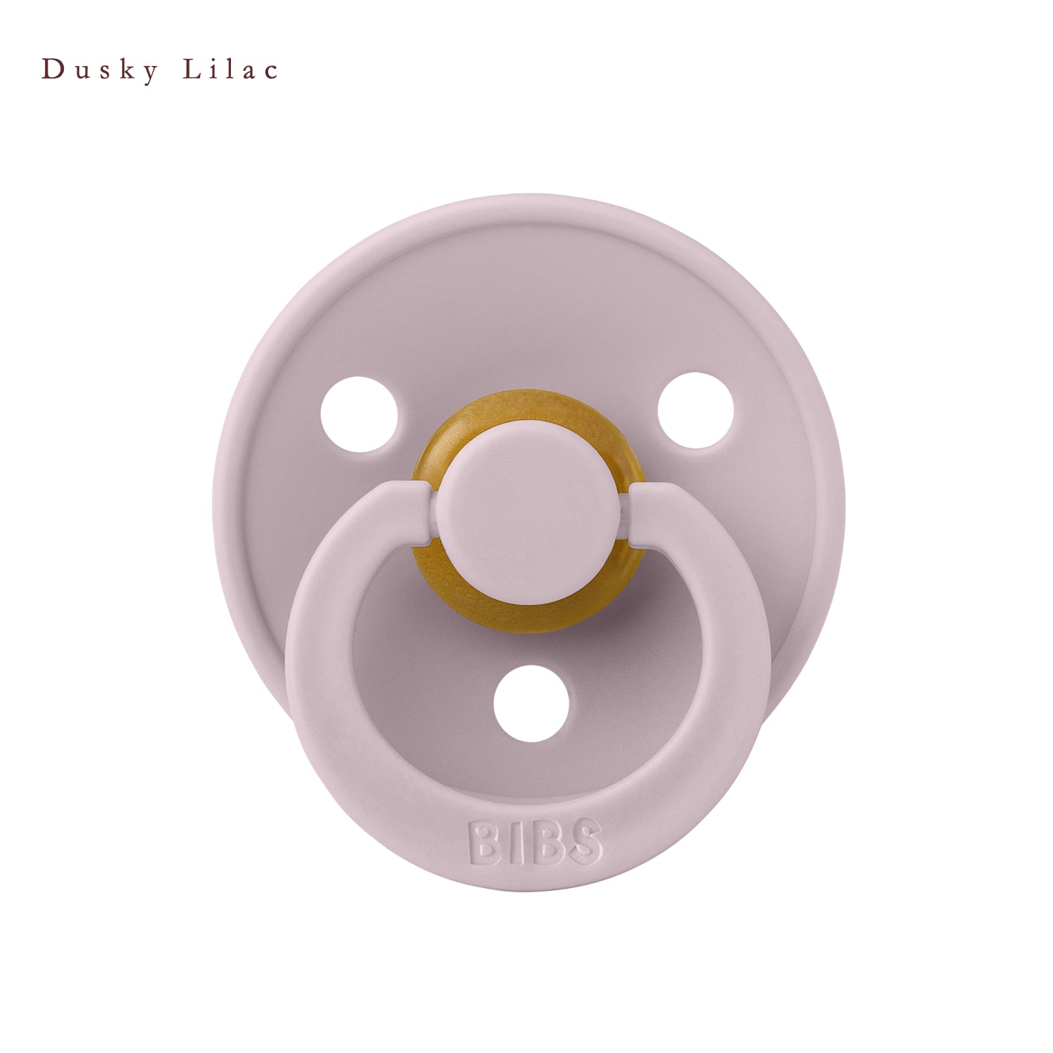 BIBS sut str. 2 med rundt suttehoved i flere forskellige farver.